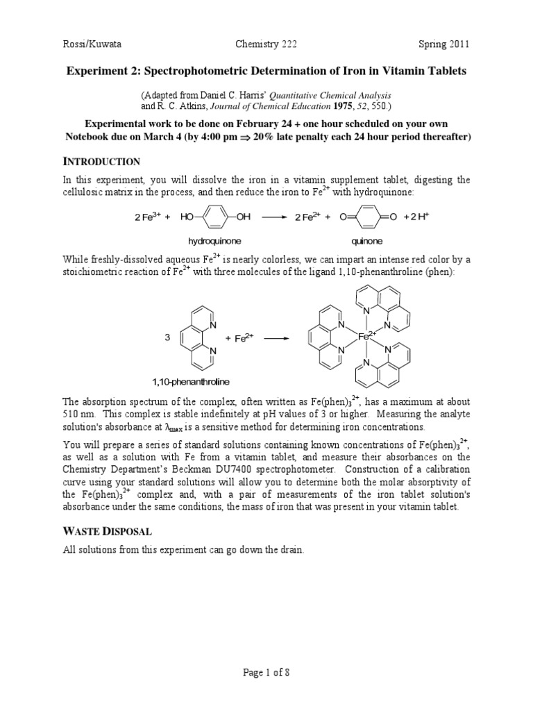 222l S11 Experiment 2 Spectrophotometric Iron Pdf Spectrophotometry Absorbance